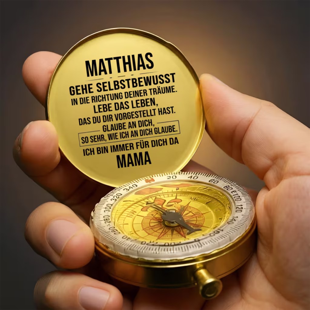 Pick a compass in your language — for your son, daughter, dad, or someone you love. We engrave their name on a real brass compass and ship it ready to gift. Available in 14 languages.